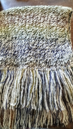 Bufanda tejida con dos agujas a mano empleando fibras naturales de merino, seda, alpaca y mohair. Modelos exclusivos. Técnica de tricotado elegante.
