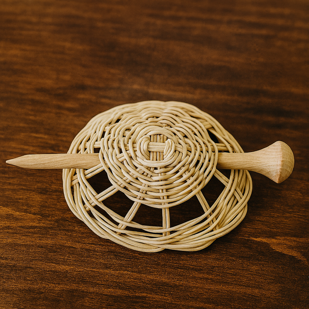 Este elegante pasador de pelo está hecho de forma artesanal por Capixuta. Emplea ratán natural, un material ligero, resistente y completamente artesanal. Su diseño circular tejido en espiral aporta un estilo único y bohemio, ideal para complementar peinados tanto casuales como elegantes. Incluye una varilla de madera suave y pulida que asegura el cabello sin dañarlo, ofreciendo una sujeción firme y cómoda durante todo el día.